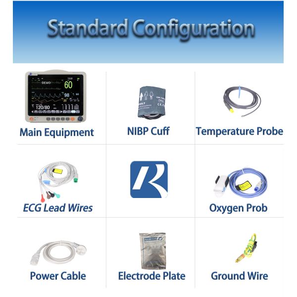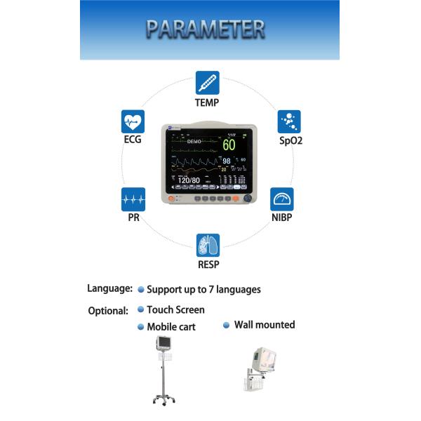 Parameters : TEMP, SPo2, NIBP, RESP, PR, ECG